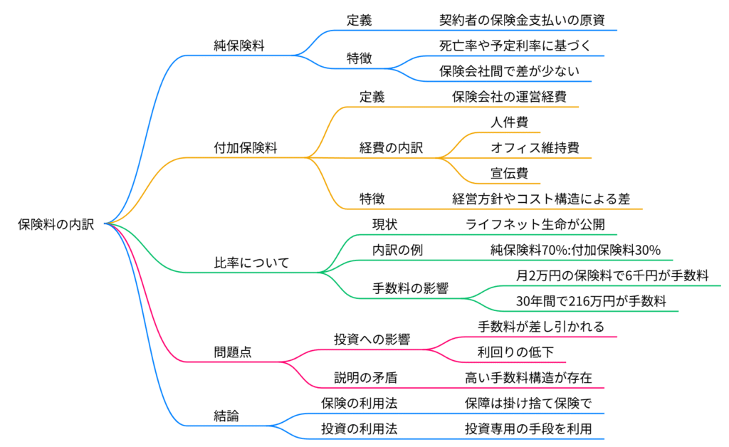 たとえば、ライフネット生命ではこの内訳を公開しており、付加保険料の比率は全体の3〜4割になることもあります。